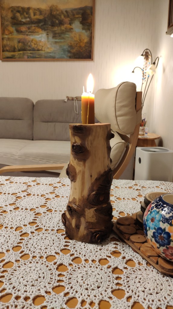 Świecznik z pnia jodły to dowód, że drobne pomysły mogą być jednocześnie praktyczne, estetyczne i przyjazne środowisku.