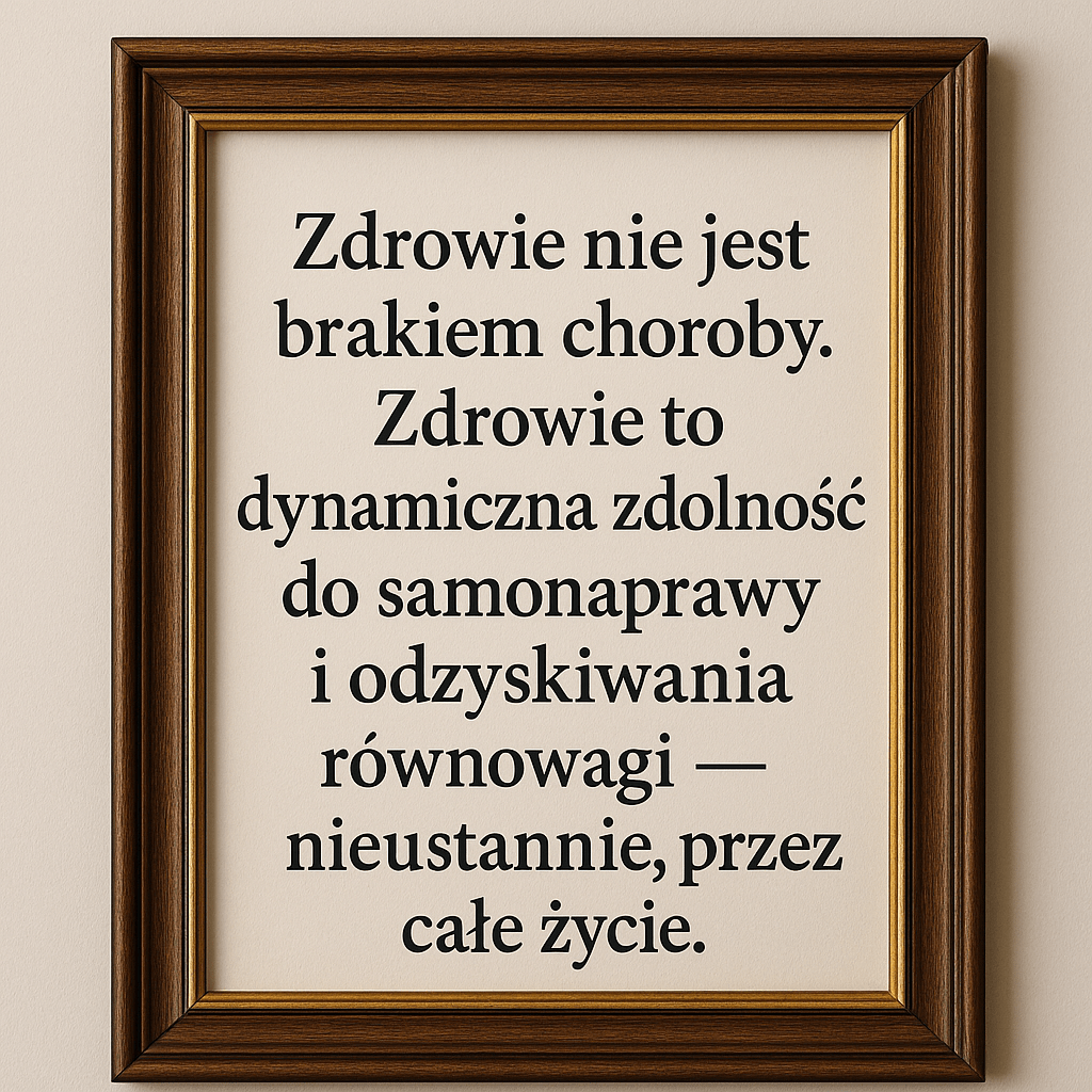 Nie istnieje coś takiego jak trwały stan pełnego zdrowia. To mit, który nie uwzględnia biologicznej rzeczywistości. Jedynym możliwym do osiągnięcia celem jest utrzymanie jak najlepszej kondycji psychofizycznej, by organizm mógł sam się leczyć i regenerować, kiedy zajdzie taka potrzeba. Realnym, naukowo wspieranym dążeniem jest więc wzmacnianie zdolności organizmu do regeneracji: poprzez sen, redukcję stresu, różnorodną dietę, ruch, kontakt z naturą i dobre relacje. Neurobiologia nazywa to „rezyliencją” – elastycznością systemów ciała i umysłu, czyli zdolnością do powrotu do równowagi po trudnych doświadczeniach zarówno fizycznych, jak i psychicznych.