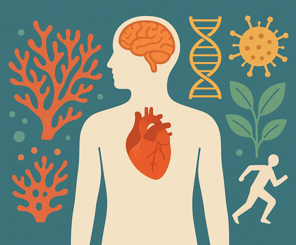 Żywy organizm jest jak rafa koralowa: delikatny, złożony i podatny na zmiany. Współczesne badania wskazują, że czynniki genetyczne odpowiadają jedynie za ok. 25–30% ryzyka chorób, reszta to efekt działania środowiska i stylu życia. Rozpracowywaniem tych zależności zajmuje się stosunkowo nowa gałąź nauki – epigenetyka, badająca zmiany w działaniu genów bez modyfikacji samego DNA (udowadnia, że dieta, długotrwały stres, sen, ruch, ekspozycja na toksyny czy nawet relacje społeczne mogą „włączać” lub „wyłączać” określone szlaki genetyczne, a co za rym idzie inicjować lub wygaszać poszczególne choroby).